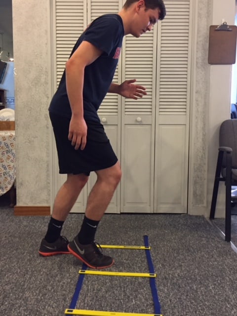 PHOTO 3: Agility Drills: for the Achilles tendon involves stepping through a “gait ladder” in various patterns and at various speeds.