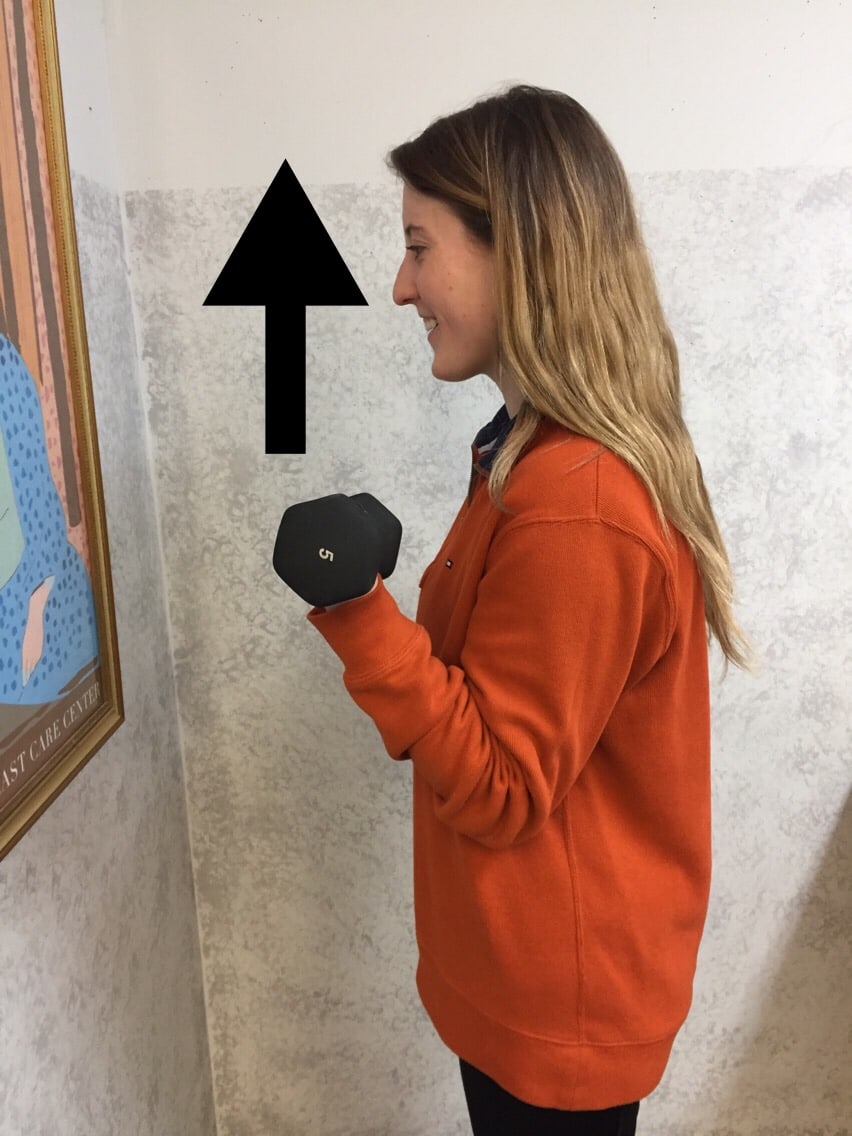 • Photo B: Concentric Bicep Muscle Curl – raise a dumbbell up against gravity as the muscle shortens.