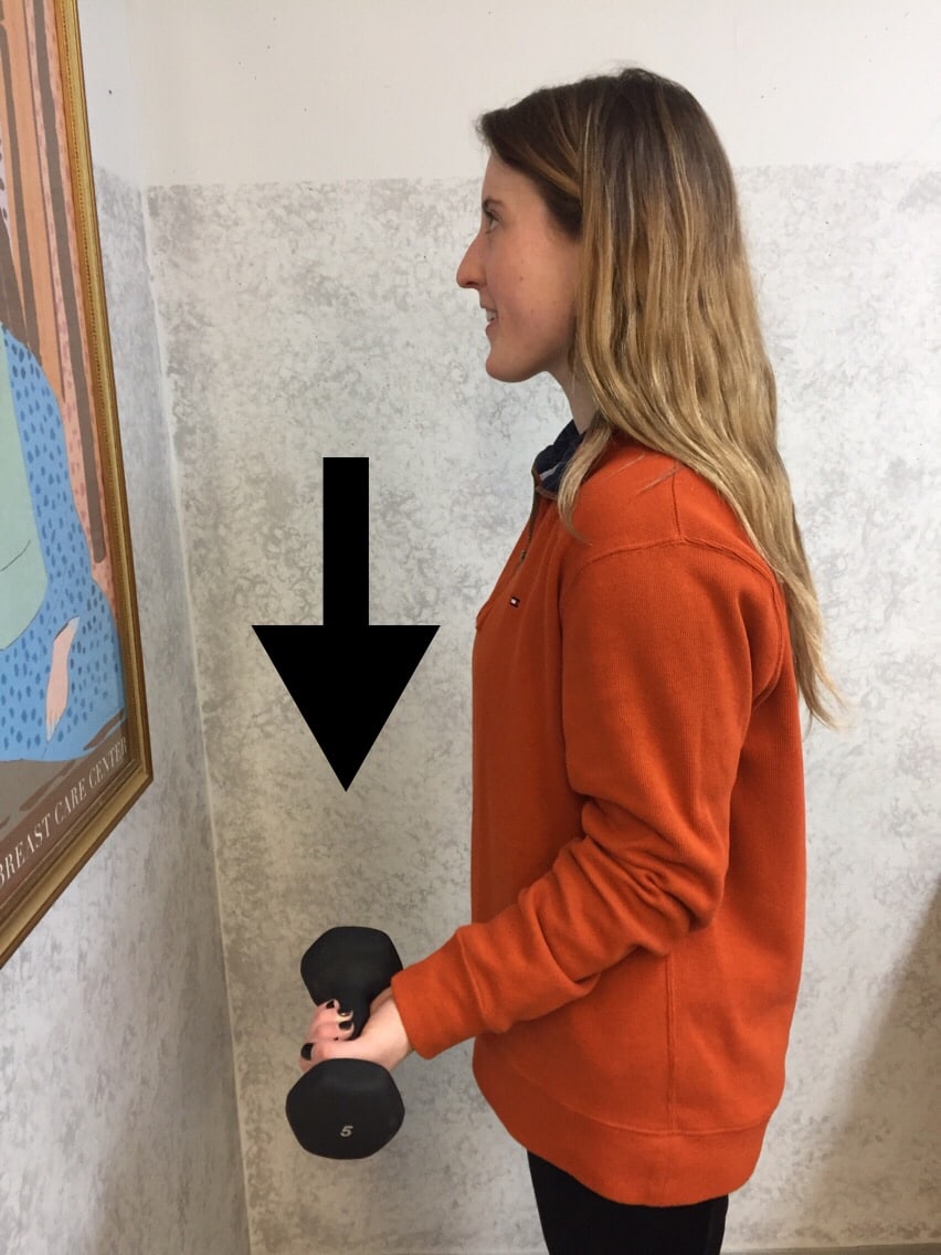 • Photo C: Eccentric Bicep Muscle Curl – lower a dumbbell slowly (4-6 seconds) against gravity as the muscle lengthens.