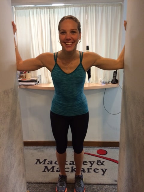 The Nicholas Institute of Sports Medicine and Athletic Trauma suggest the following stretches to prevent swimmer’s shoulder: