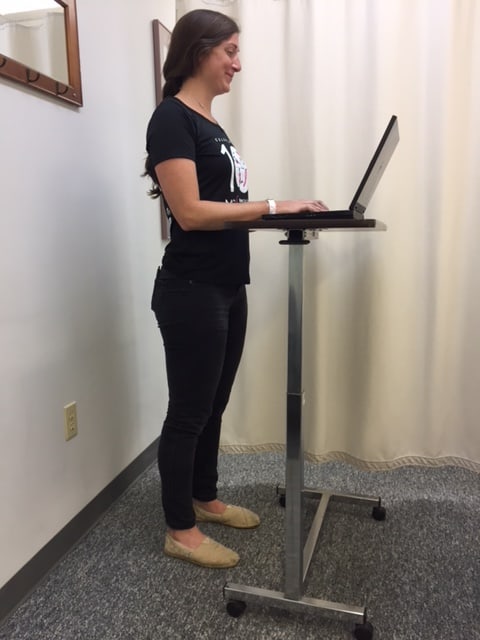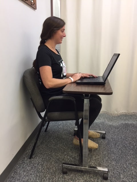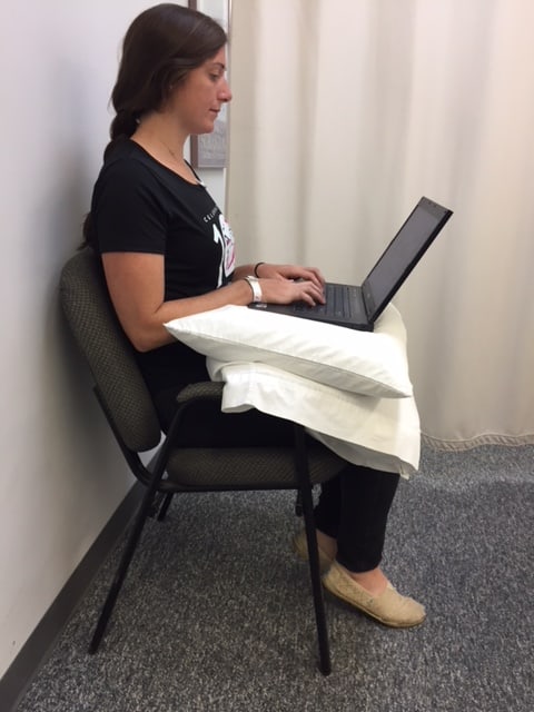 Sitting: When sitting, use an ergonomic chair at work station with a lumbar support and adjustable height. Get close to your keyboard and monitor. Stand up and perform the above postural exercises every 45-60 minutes. If you are working on a laptop or tablet, use a lap desk or place a pillow or two on your lap to elevate the device.