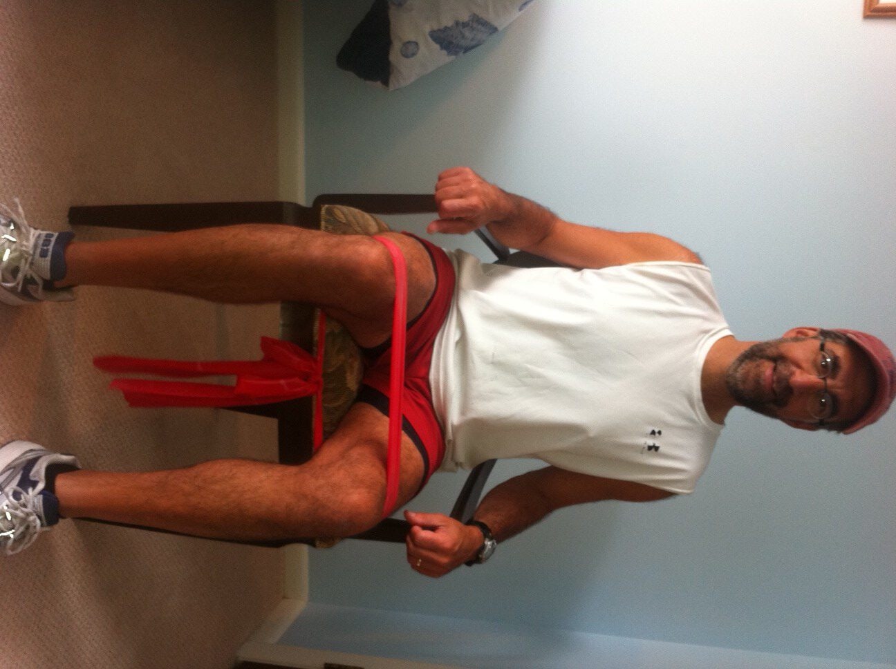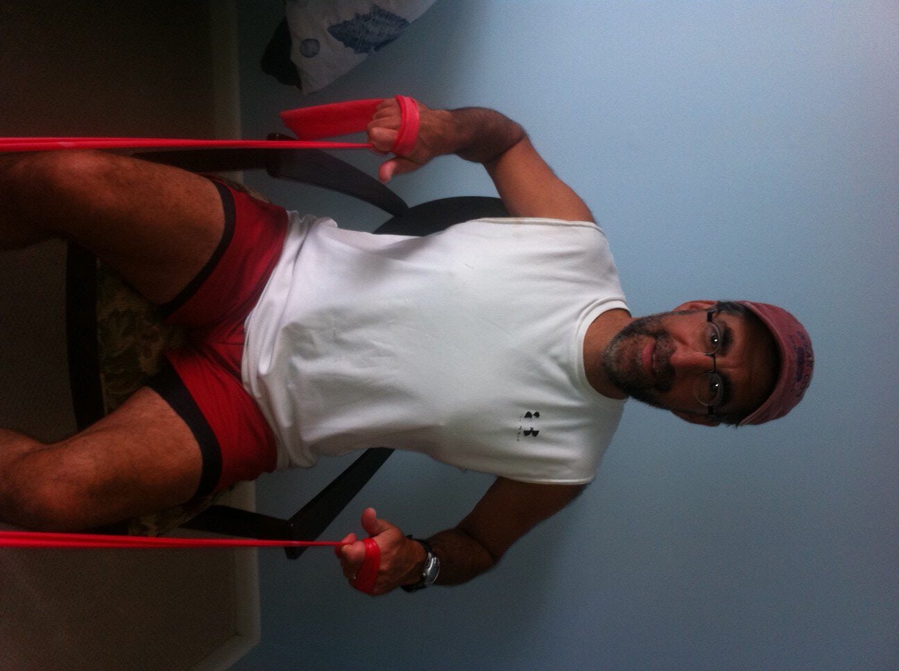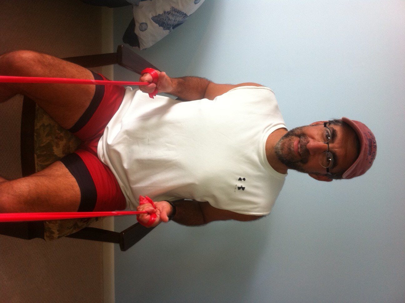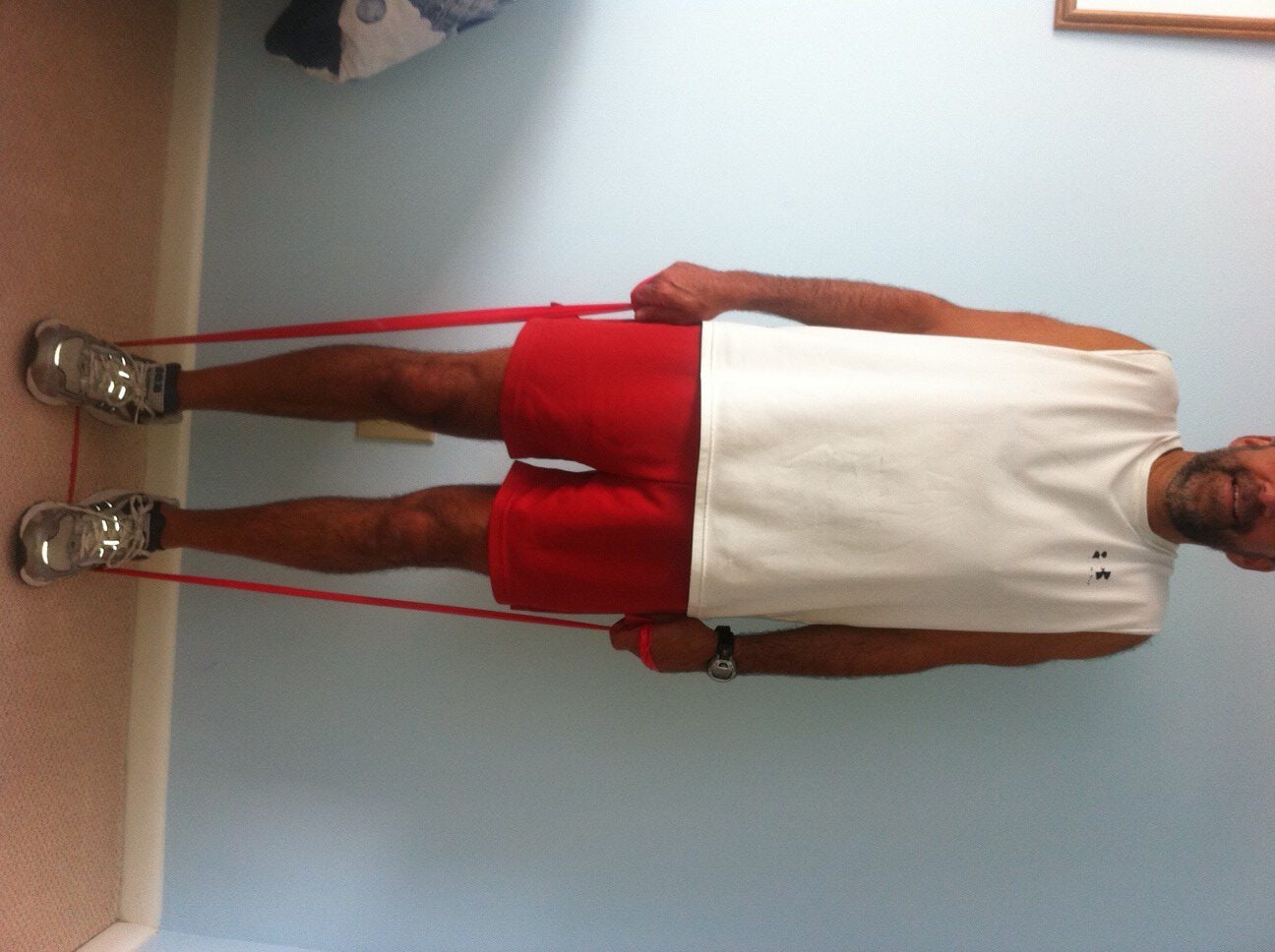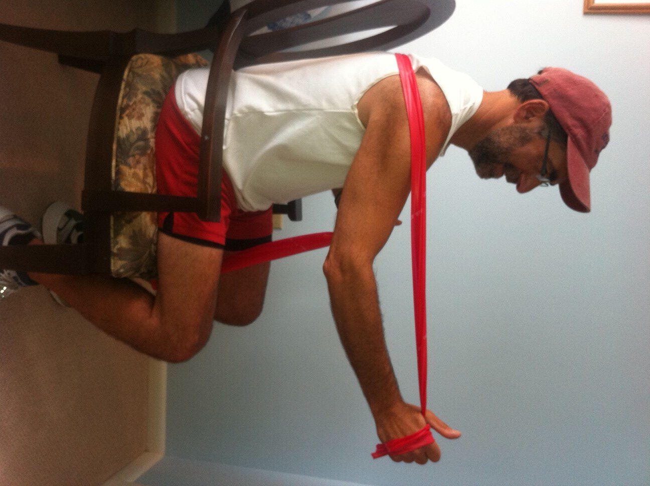 Frequently, patients ask for a home exercise program that is quick and easy. For some, they want to do some exercises before or after work to gain or maintain muscle tone, but don’t have time to join a gym. For others who are retired, they want to do some simple exercises to help them maintain independence and safety performing daily activities around the house such as; climbing stairs, getting in and out of a shower, putting on shoes and socks, cooking, cleaning, and carrying groceries or laundry. I have comprised 10 simple exercises including upper and lower body and balance and core. The only equipment you will need is a chair and resistance bands; yellow has the least resistance, black the most, red, green, blue in between. They can be purchased at any sporting goods or department store.