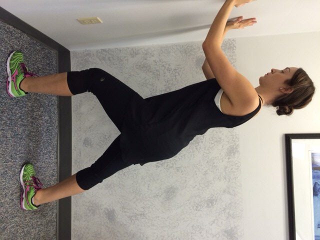 - TRUNK SIDE STRETCH: Stand with your left hand on your hip and your right arm above your head. Bend to the left without leaning forward or back. Feel the stretch on your right side. Repeat with your left arm.