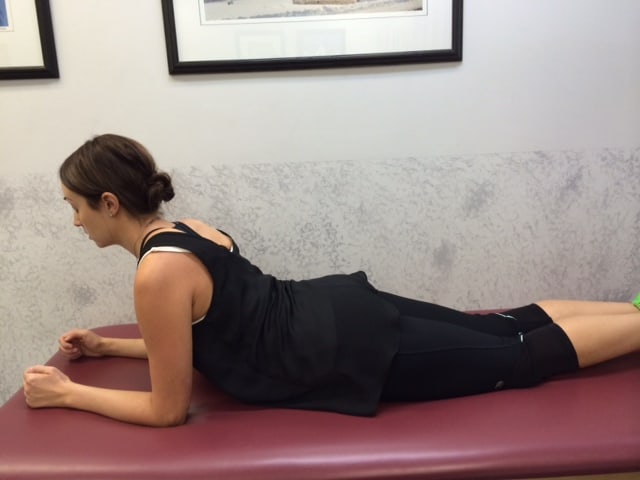 - LOW BACK EXTENSION STRETCH: Lie on your belly and prop up on your forearms. Hold this position and inhale and exhale. Feel the stretch in the small of your back.