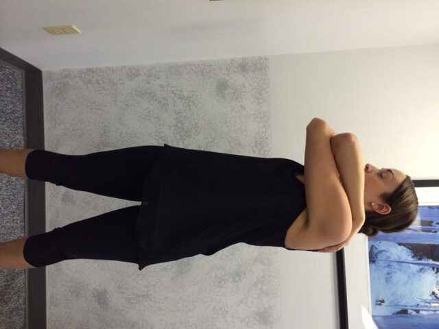 - TRUNK ROTATION STRETCH: Stand upright with feet shoulder width apart. Cross arms over chest and turn to the right with your upper trunk. Keep lower body facing straight. Feel the stretch on the left lower back and trunk. Repeat turning to the left.