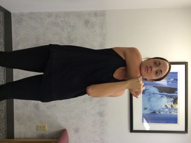 - SHOULDER STRETCH: Take your right arm across your chest. Use your left hand to pull your right elbow across your chest. Keep your body facing forward. Feel the stretch on the back of your right shoulder. Repeat with your left arm.